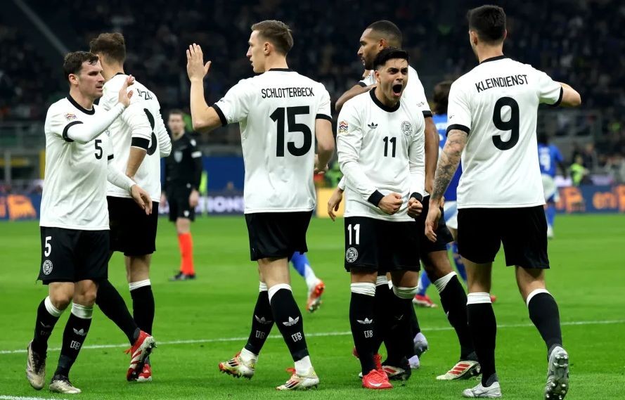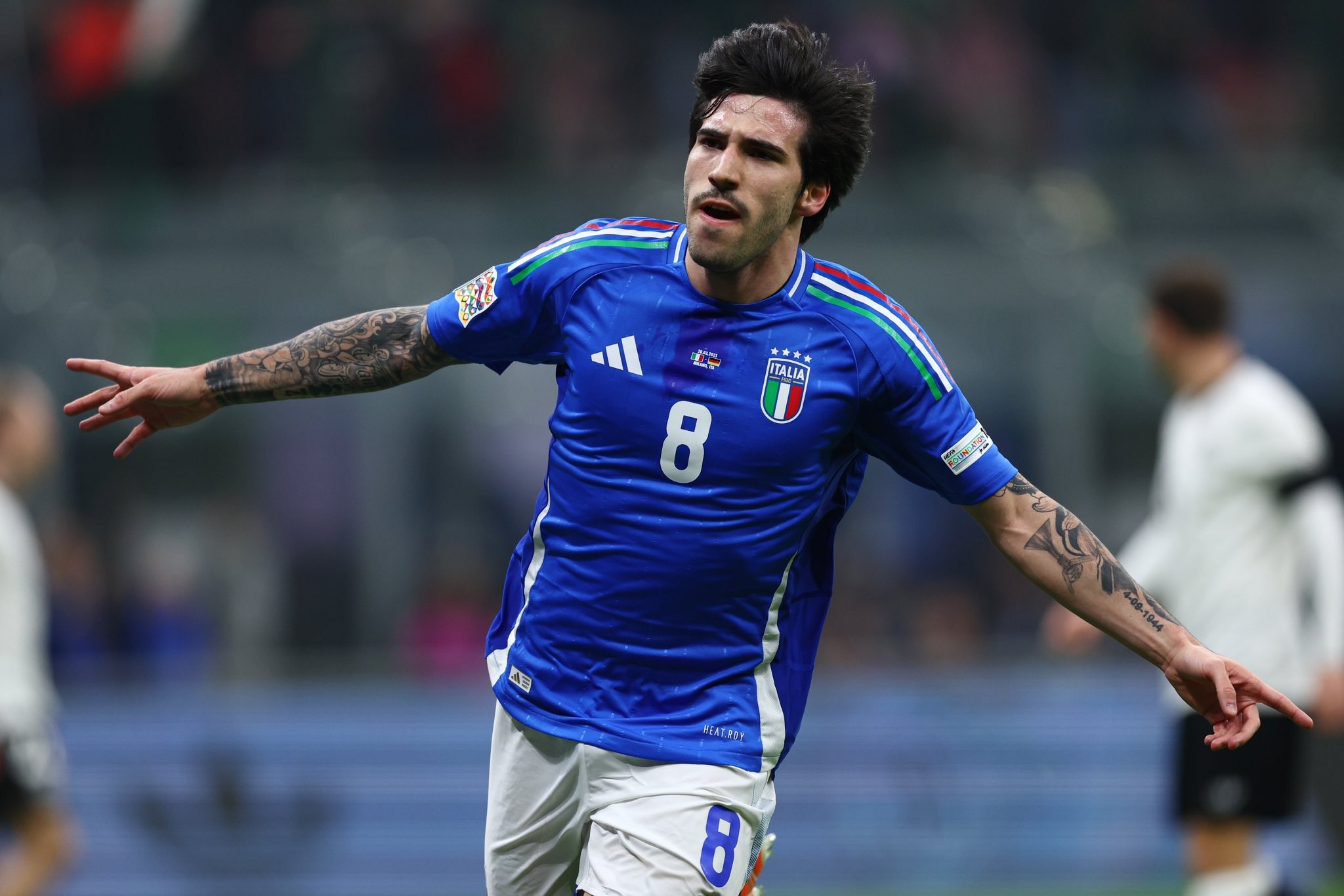 В первом матче против сборной Германии итальянцы стартовали идеально — уже на 9-й минуте счет открыл Сандро Тонали. Совсем недавно он выиграл Кубок лиги вместе с «Ньюкаслом», а теперь забил второй гол за сборную после продолжительной дисквалификации.